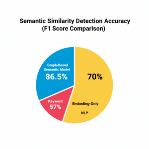 Empirical comparisons between graph-based semantic models and traditional plagiarism detection methods demonstrate significant improvements in performance metrics. For instance, keyword-based detection typically achieves precision rates of 55–60%, while embedding-only NLP approaches improve precision to 68–72%. Graph-based semantic models, however, achieve precision and recall values above 85%, providing a more reliable mechanism for detecting nuanced similarity. To visualize this, a circular pie chart representing F1 scores can clearly illustrate the advantage of graph-based approaches over conventional methods:
